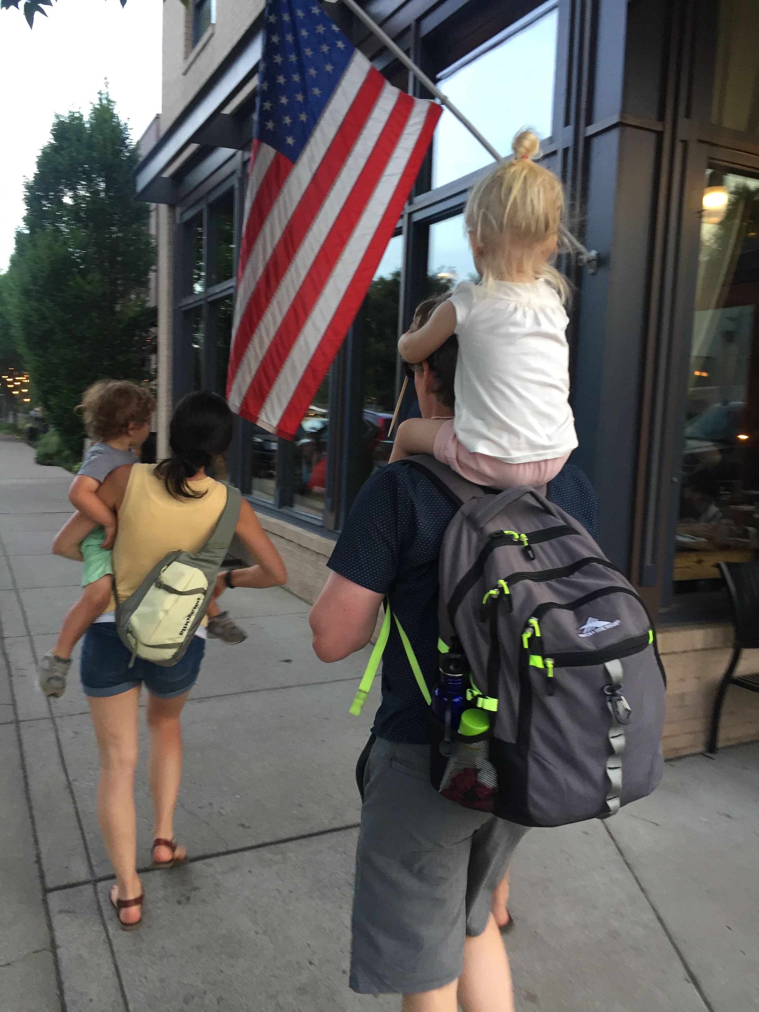 Anyway, we got back to the table and I shared our delightful story with everyone. I’m not sure if it’s remembering the laughter, or just being able to picture how happy we all were that night that stands out in my mind. It probably wasn’t the best memory from the trip – there were so many great moments. But it certainly was one of them, and it is a snapshot of where we are right now in our lives. We aren’t perfect parents. We don’t have perfect kids. We stay with friends rather than in a hotel because it’s what we can afford. But we try our hardest to be great parents; or at the very least to be loving and present. And we have great kids; even when one kid is busy getting her mouth all dirty and the other is expressing herself using her dirty mouth.