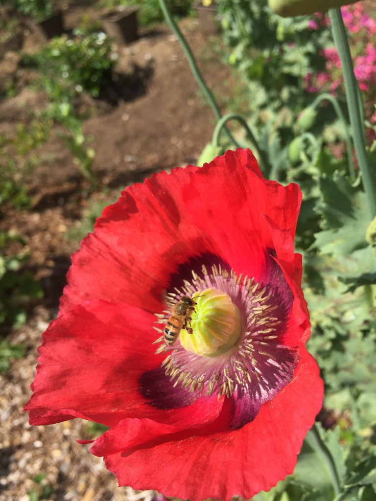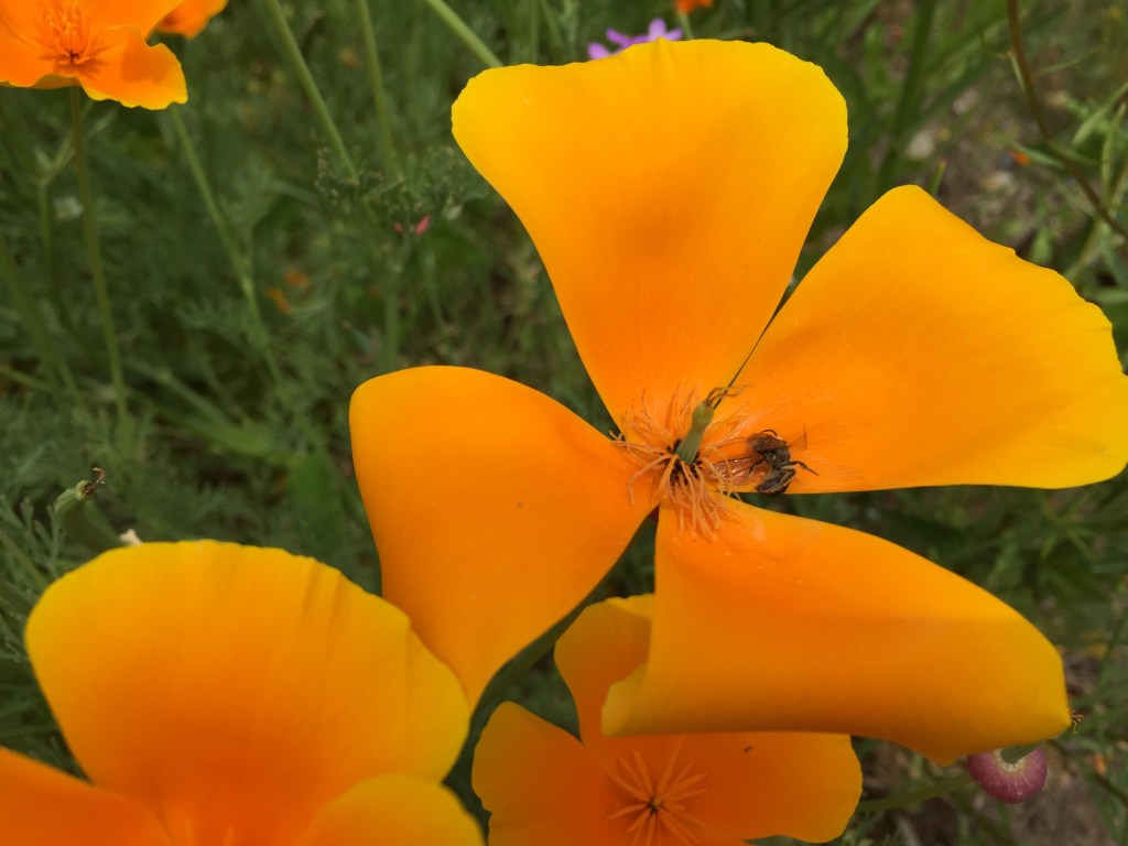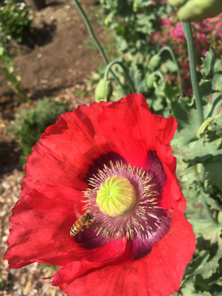 I am slowly but surely phasing out the grass in our front yard (much to the dismay of my husband ; ) and plan on making it a pollinator paradise. I can already picture having lounge chairs out on the flagstone patio surrounded by birds, butterflies and bees! But that vision is still a few years from being realized, so for now I simply delight in seeing happy bees in what’s left of our dandelion riddled, dry, crispy lawn and cramming as many flowers as I can into the planting areas so I can exercise my new hobby of taking picture of bees. They are just so cute!