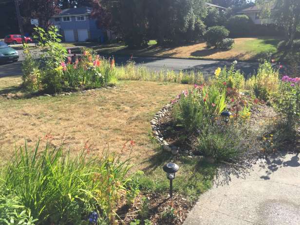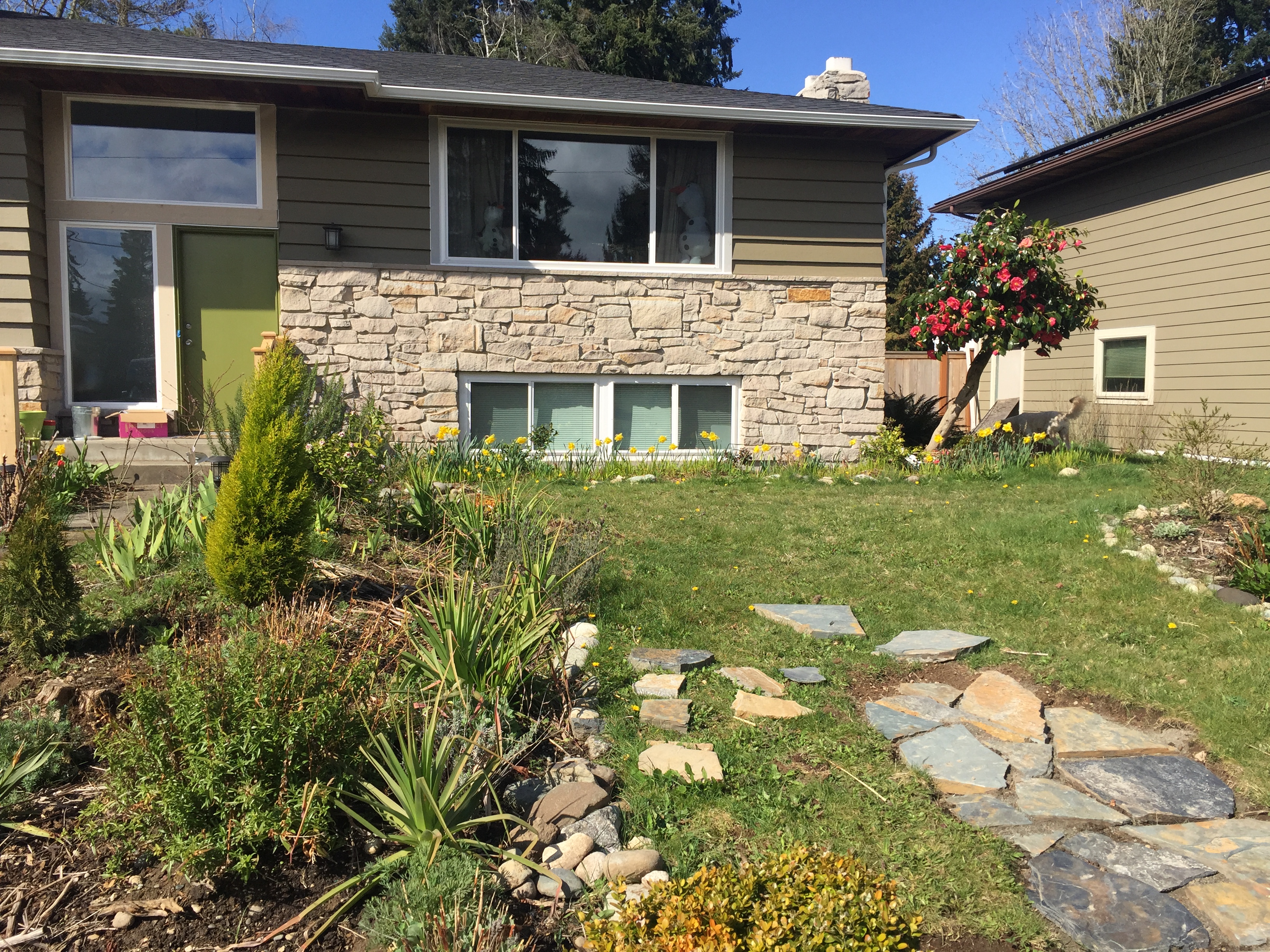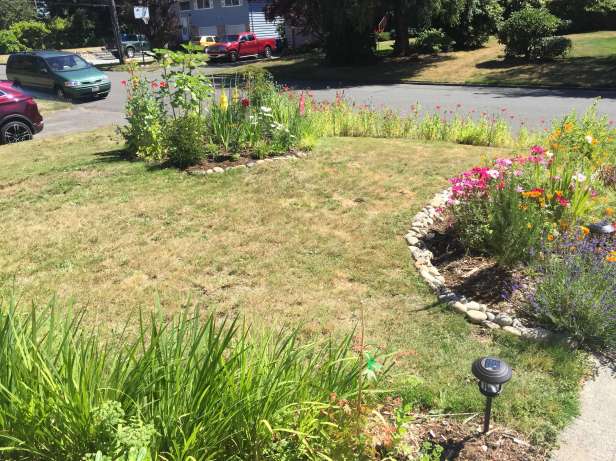 The pollinator garden was going to be relatively easy for me to install. First, we took out a tree and then I was able to dig out portions of the grass immediately upon purchase. I got a lot of flowering plants and shrubs for free (YAY!) from a local Facebook group called Share Plants Shoreline. I also bought a bunch of seeds and a few other flowers and shrubs that would bring butterflies and bees into our space. Add in a little bit of labor and a lot of watering and I was well on my way to transform the yard into a pollinator paradise in just one year.
