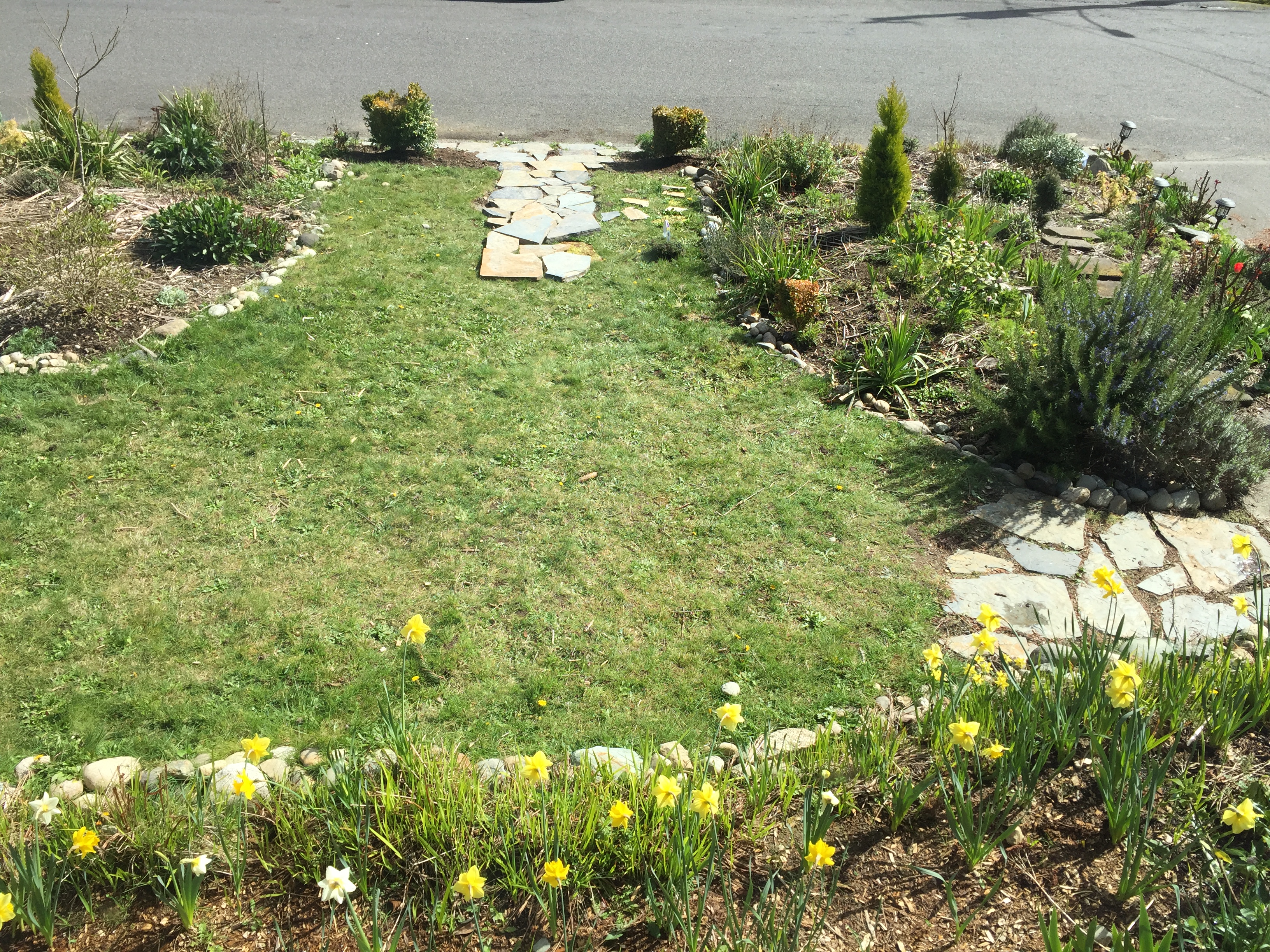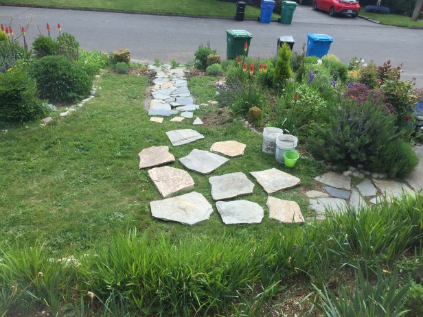 To do the paths, I started buying a few flagstones at Home Depot whenever they had any of the big ones there. I figured if I at least got started, I would have a constant, and slowly expanding reminder that one day there was going to be a glorious patio.