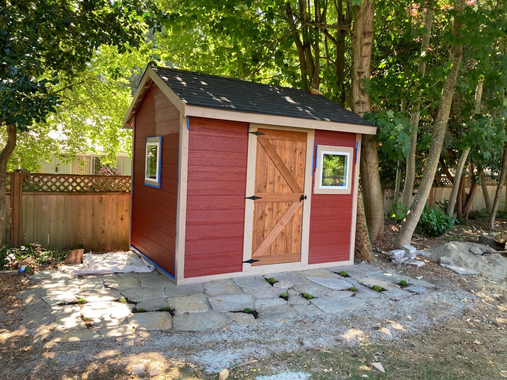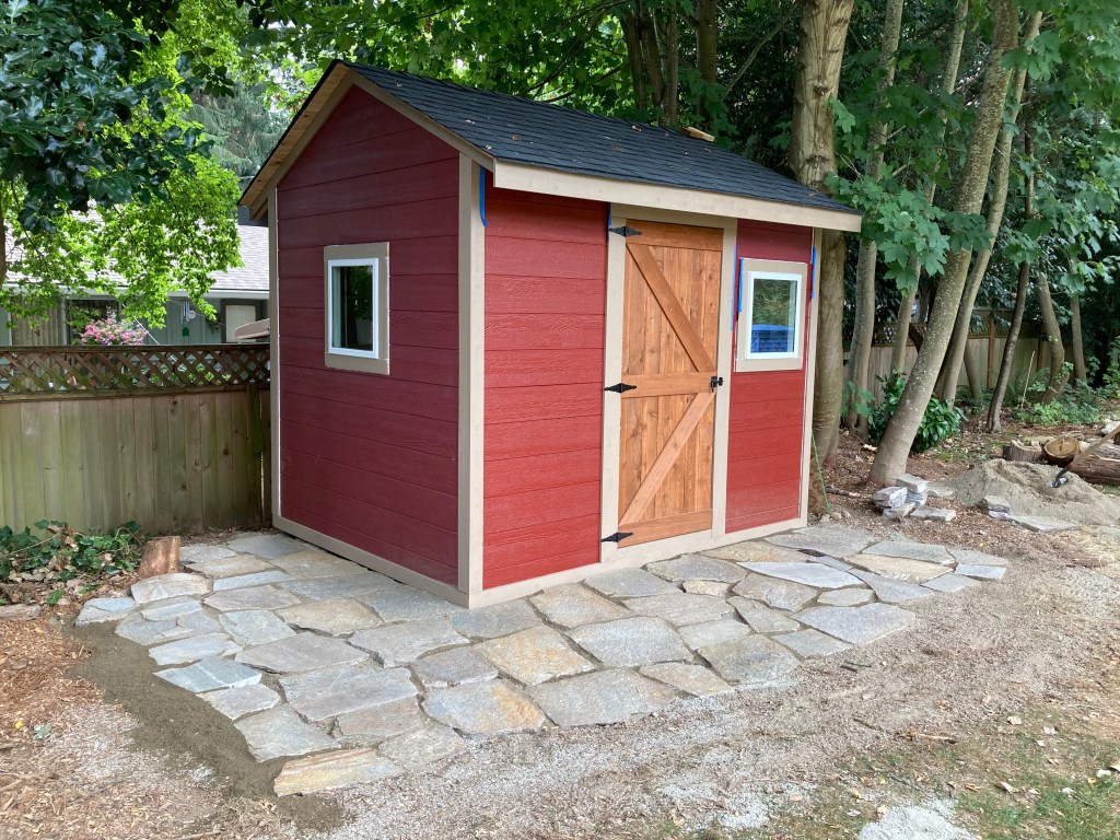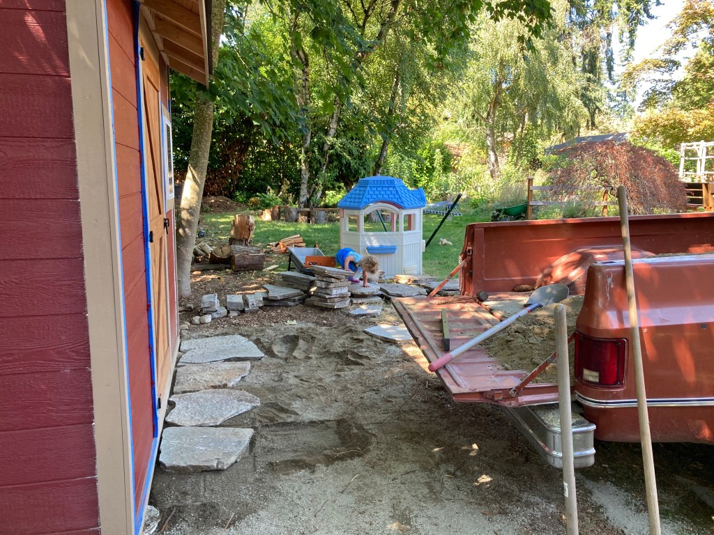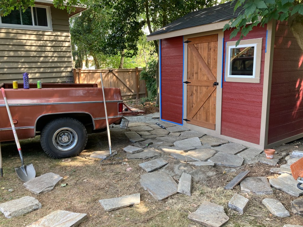 She actually gave me so much stone that I was able to make a bonus little patio apron around the brand new shed my husband had just built!