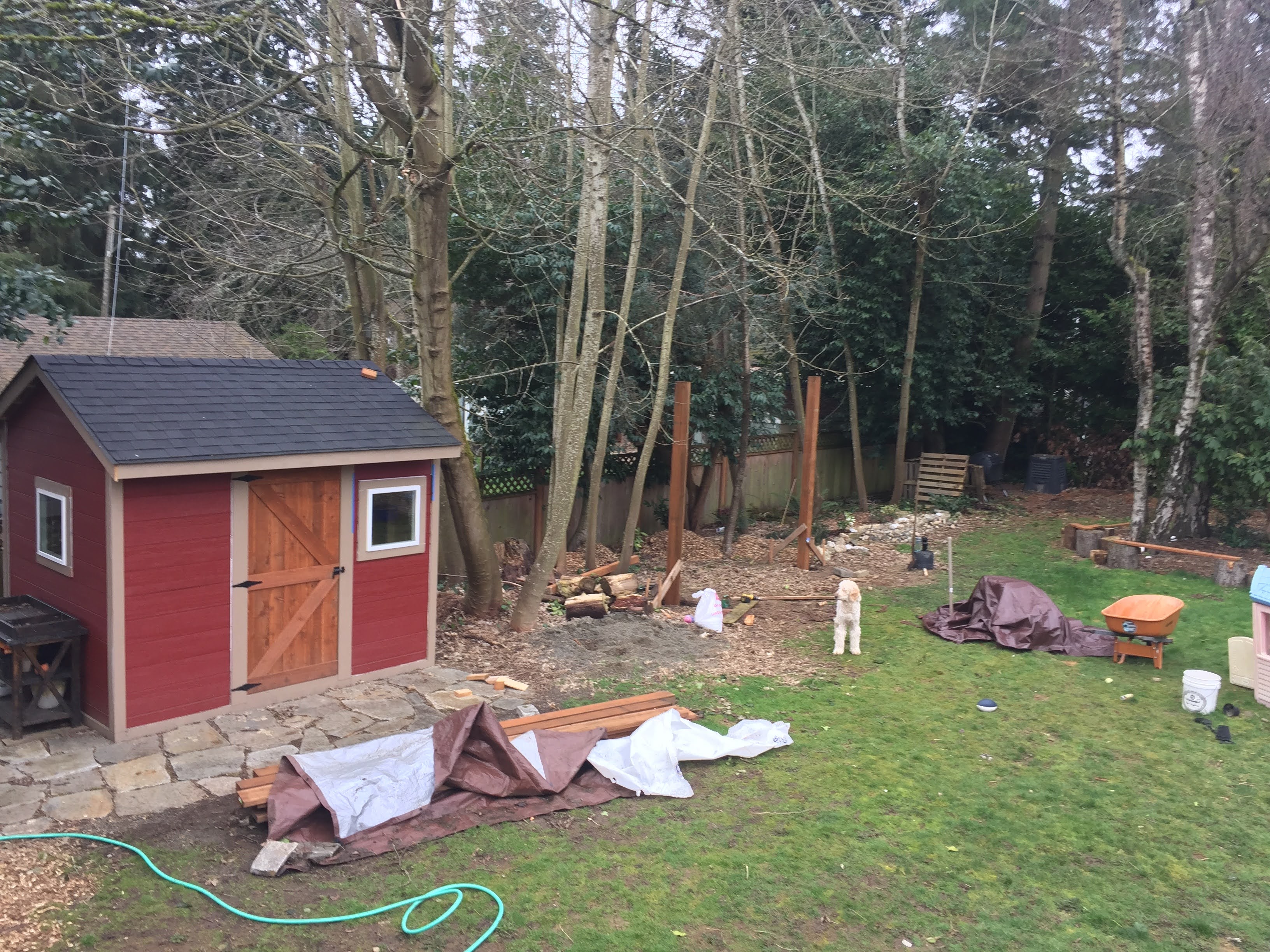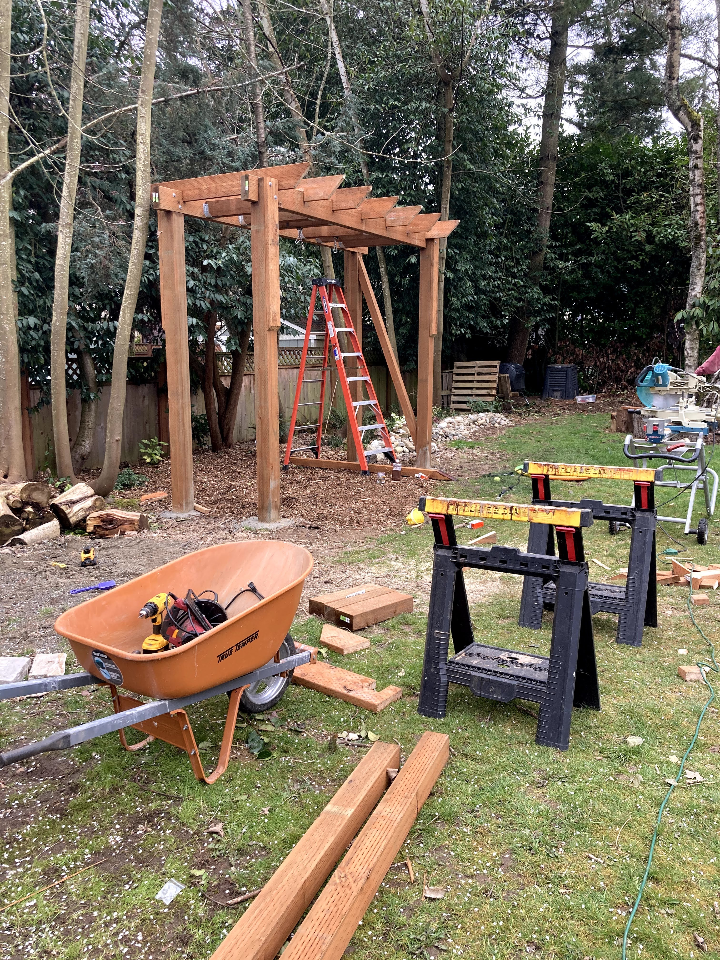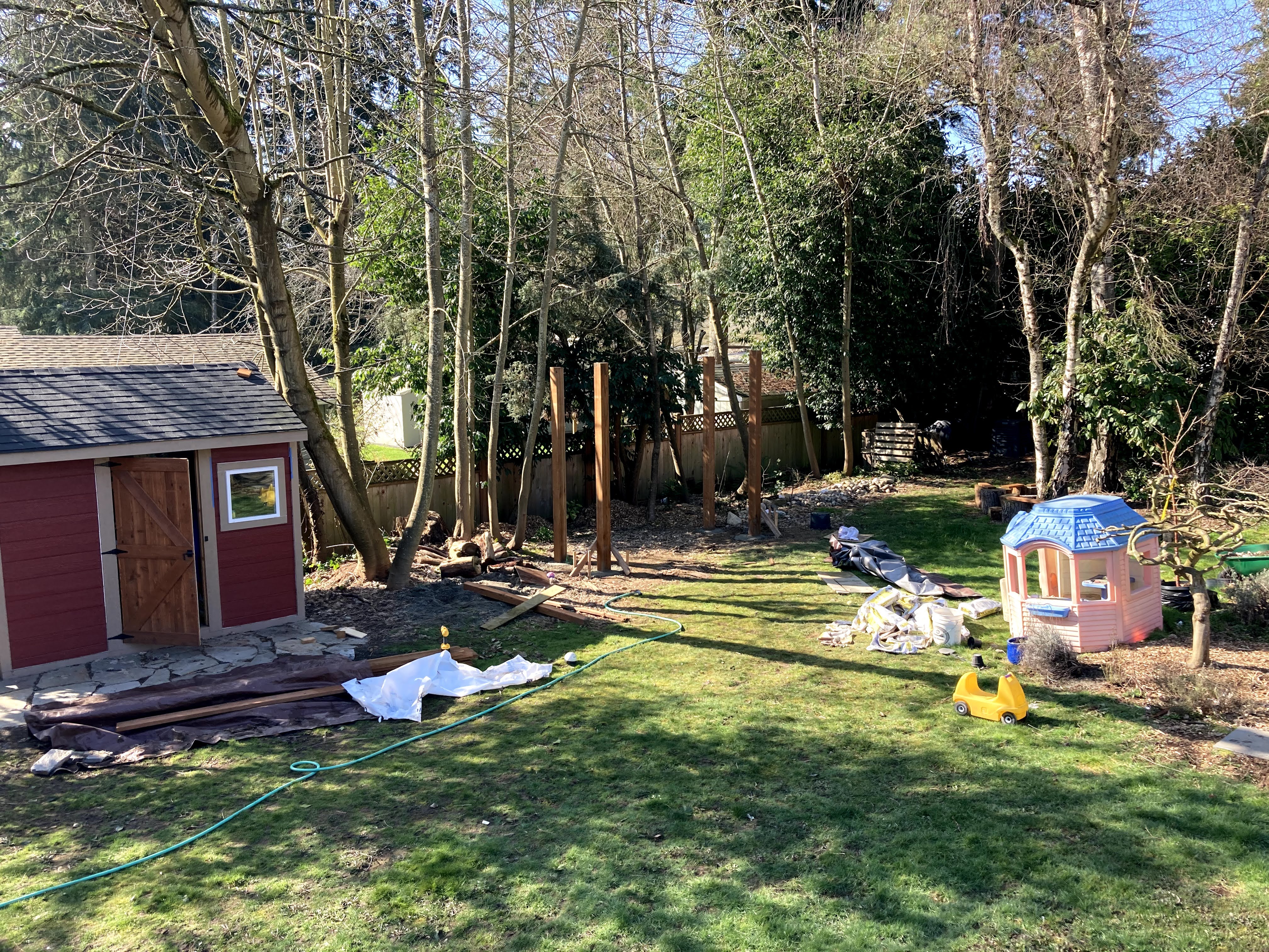 After doing A LOT of internet searching, we designed our perfect trellis swing set that would be both sturdy and attractive, and for that matter it was also going to be a bit expensive. I sketched out what I wanted for Jon to use as a guide and then we determined where the best place was in the back yard to build this thing.